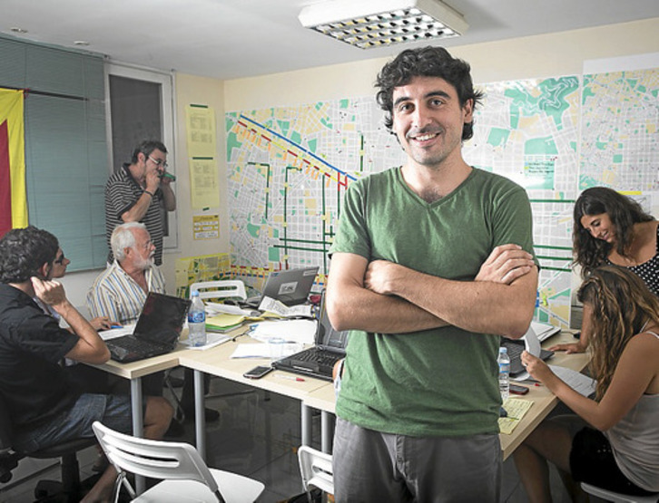 En la sede central de la Assemblea Nacional Catalana (ANC) no cabe un alfiler. Ni un momento de descanso. Literalmente. Esquivando mesas, cajas, mapas y algún que otro objeto volador conseguimos un pequeño despacho donde entrevistar a uno de los miles de activistas de la Assemblea que hoy harán posible una nueva demostración de fuerza independentista.