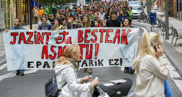 Si antes del inicio del juicio contra los 28 jóvenes independentistas se sucedieron las movilizaciones, el comienzo de la vista oral en la Audiencia Nacional y la intervención de la Ertzaintza en Loiola para detener a cinco de los encausados motivó ayer nuevas manifestaciones.