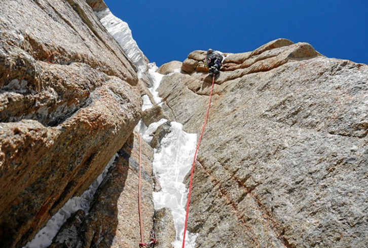 Errusiarrek bezala, protagonistok ere kapsula estiloan jardun zuten, eta adierazi dutenez, harkaitz oso onarekin, izotz puska handien erorketekin eta hotzarekin egin zuten topo. Lehen sei egunetan, talde honek 11 luze eskalatu zituen: «Arrokaren kalitatea oso ona zen, eta batez ere artesi piloa eskalatu genituen. Bat bukatzen zenean, beste sistema batera zeharkatu behar genuen; hori izan zen, bederen, eskalada ia osoaren ezaugarri nagusia. 9. eta 11. luzeak zailenak izan ziren, 5.12 zailtasunekoak».