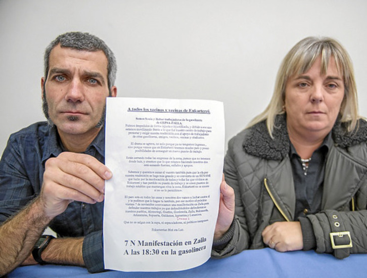 Sonia Antón y Rober Salazar, con quince y veinte años de antigüedad en la la gasolineara de Cepsa, de Zalla, aseguraron ayer en una rueda de prensa que «fuimos despedidos de forma injusta e injustificada».