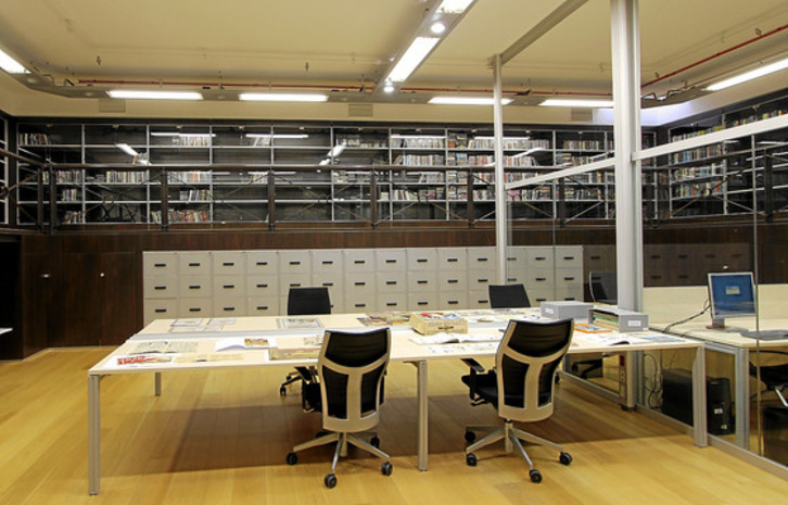 A pocos metros de Koldo Mitxelena Kulturunea, en la peatonal calle Reyes Católicos, se encuentra Komikigunea, un amplio espacio dividido en dos plantas. La inferior, el sancta sanctorum subterráneo, es el almacén, donde miles de cómics y documentos relacionados descansan en una sucesión de estanterías móviles que se abren y se cierran accionando una especie de timón. Es un espacio mantenido en condiciones idóneas para la conservación de los fondos, mediante el control de la temperatura, la humedad y la luz, al que accede el personal del centro para buscar los materiales que subirá a la planta superior, la del nivel de la calle, para que sean consultados por los usuarios de Komikigunea.