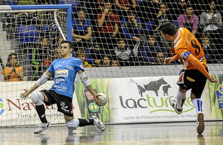 Los entrenados por Pato saltaron al terreno de juego con muchas ganas y con la intención de sentenciar el envite cuanto antes, aunque los visitantes se defendieron muy bien, cerrando los espacios y dejando sin opciones a los navarros, hasta que en el minuto 12 Andresito pudo inaugurar el marcador.