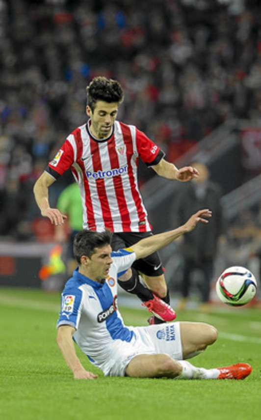 En medio de un gran ambiente, los rojiblancos saltaron al encuentro como se esperaba con lo que había en juego y en su casa, nada de contemporizar, nada de pensar en un partido de vuelta, a apretar al rival `perico' y no dejarle pensar. Fue así justo y de manera sorprendente hasta que se puso por delante en el marcador con el golazo de Aduriz en su 34 cumpleaños. Eran minutos intensos, sin demasiada orfebrería pero sí de agobio a un Espanyol que se veía bastante incómodo y hasta fallón en defensa. La tuvo el propio `Adu' a los cinco minutos, se fabricó la jugada y chutó raso al guardameta. Avisó.