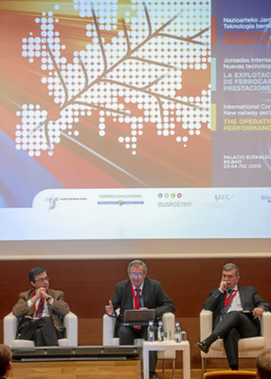 Los tiempos y las frecuencias de la «Y vasca» fueron una de las cuestiones abordadas en una mesa redonda en la que participaron responsables de EuskoTren, la Autoridad Portuaria de Bilbo, Renfe y CAF, entre otros, en el marco de las jornadas sobre «La explotación de Líneas de Ferrocarril de Altas Prestaciones» celebradas hasta ayer en Euskalduna Jauregia.
