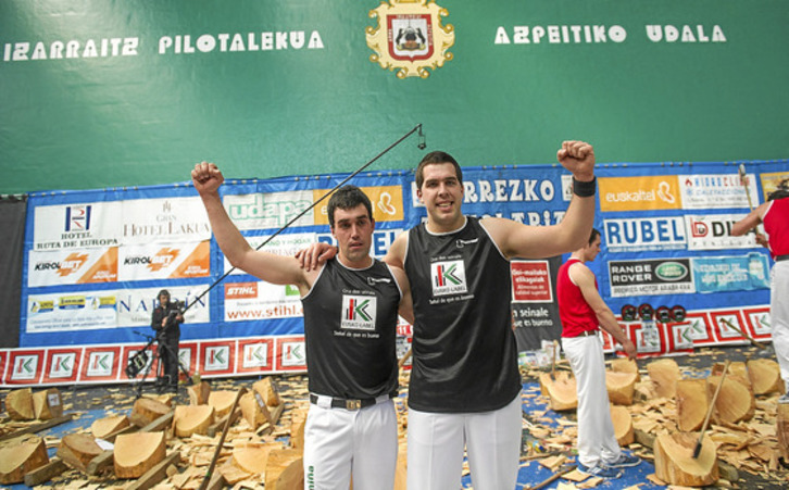 Ez zen ezusterik izan, eta Aitzol Atutxak eta Ugaitz Mugertzak eraman zuten atzo Binakako Urrezko Aizkora, finalean Jon Rekondori eta Ander Erasuni irabazita. Azkenean iraupen proba izan zen erabakigarria.
