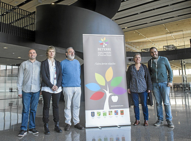 Por otro lado, los ayuntamientos de Andoain, Astigarraga, Hernani, Lasarte-Oria, Urnieta y Usurbil presentaron ayer la Agencia de Desarrollo Integral Beterri, que tiene el objetivo de crear empleo en los citados municipios y que esta institución se convierta en un referente de planificación y desarrollo socioeconómico. Según explicaron, «con la creación de esta agencia se hará frente al paro de la comarca estableciendo estrategias e infraestructuras para cambiar la situación actual de paro». En el acto estuvieron presentes los alcaldes Luis Intxauspe, (Hernani), Ana Carrere (Andoain), Pablo Barrio (Lasarte-Oria), Mertxe Aizpurua (Usurbil) y Andoni Gartzia (Astigarraga).