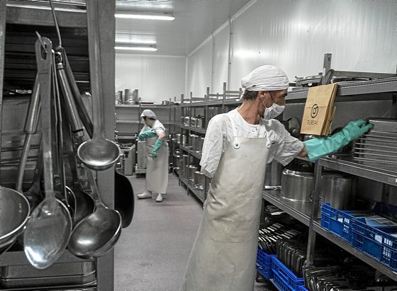 Hernanin dago Sukalde Zentrala, Gureak taldeak elikadura eta osasun alorrean daukan zerbitzua. Jo eta su lanean ari dira asteotan lanean, normalean iristen ez diren tokietara ere iritsi behar baitute. Bertako arduradun Laura Cuestak eman dizkigu azalpenak. «Catering zerbitzu bat daukagu eta normalean bazkariak eta afariak zerbitzatzen ditugu Gureak-eko tailer guztietan, adinekoen eguneko zentroetan, zaharren egoitzetan, Goienetxe Fundazioko zentroetan, haurtzaindegietan, enpresetan... horrez gain, badugu etxez etxeko zerbitzu berezi bat. Horren bitartez, 65 urtetik gora dituzten edota egoera zaurgarrian dauden herritarrei jatekoa etxera eramaten diegu. Guztira, egunean 3.300 bat pertsonarengana iristen gara».