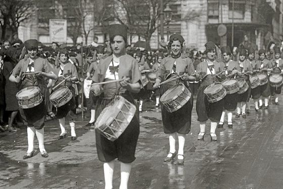 B.M. Egun ezagutzen dugun Danborradan 1980. urtean atera zen lehen emakumea, Kresalako danborradan, hain zuzen ere. Jakin badakigu, baina, aurrekariak izan zirela, nahiz eta data zehatzak ez ezagutu. 1927 eta 1936. urteen artean kokatutako argazkiak aurkitu ditugu eta bertan emakumeak ageri dira, ez bakarrik kantinera moduan, gainera. Errepublikako lehen urteetan jazo zen emakumeen lehen presentzia Danborradan, eta, dirudienez, nahiko kritikatuak izan ziren.