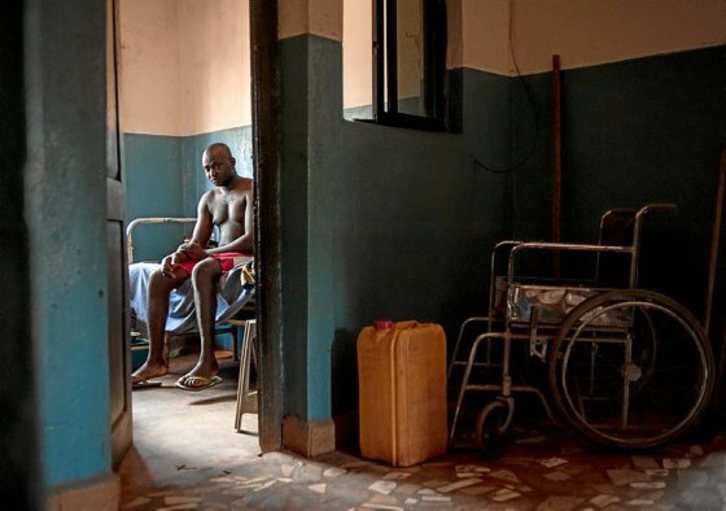 Ahulegi dago oraindik eta lagun batzuek ekarri dute kazetariarengana, plastikozko aulki batean jarrita. Etxola baten itzalpean jarri dute. «Protestaldi batean geunden, kantari. Bat-batean poliziak etorri eta guri erasoka hasi ziren. Negar gasa jaurti ziguten, tiro egiteaz gain», esplikatu du.