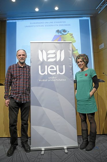 Eta badira «on line» unibertsitateak. Eta «on line» ikasteko aukerak oparoak dira, noski. Gaztelaniaz, frantsesez eta ingelesez, esaterako, aukera andana dugu. Euskaraz ere bai, gutxi batzuk. Baina gradu mailako titulaziorik ez. Ez dago modurik, esaterako, Enpresen Administrazio eta Zuzendaritza edo Psikologia euskaraz eta on line ikasteko. Eta are gutxiago ardura profesional eta pertsonalak dituzten ikasleen erritmoetara egokitzeko malgutasunarekin. Zentzu horretan, azken asteotan, UEUk antolatu jardunaldi bat izan dugu gai hau lantzeko aitzakia. Atzo izan zen, Koldo Mitxelenan. Mamitsua izan zen. Eta horretarako antolatu genuen.