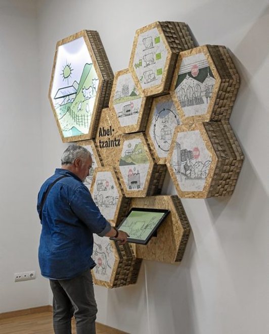Panel bakoitzean dauden irudiak laguntzeko, euskarri digitaletan proiektatzen diren bi minutu eskaseko bideoak prestatu dituzte atal bakoitzari buruzko informazioarekin.