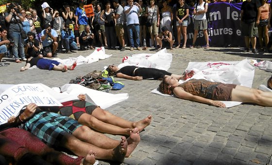 Bartzelonako Poble Nou auzoan egin zuten bidaiako lehen protesta ekitaldia. Manifestazioa antolatua zegoen eta, horren ostean, errefuxiatuen aldeko kolektiboen hitzaldiak zein musika saioak. «Bartzelonan ere Ada Colau alkateak jaso gintuen», esan du Gutierrezek. Instituzio publikoen laguntza izan dutela aipatu du. Emakundek babesa adierazi die eta Eusko Legebiltzarrean «batzuek» aldeko jarrera agertu dute. Bestalde, Bizkaiko abokatuen elkargoak laguntza juridikoa eskaini die, «atxiloketak izango balira ere» eta unibertsitatetik ere jaso dute babesa: «Unibertsitatetik zazpi lagun gindoazen eta webgunean agertu zen behintzat».