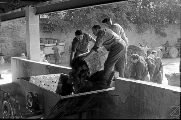 Errioxako ardoari buruzko agiririk zaharrena 873. urtekoa da, mahats laborantza erromatarren eskutik iritsi zen arren. 1926an, Errioxako Ardoaren Kontseilu Arautzailea sortu zuten, ekoizpen esparrua mugarritu eta «Errioxa» izenaren erabilera kontrolatzeko, baina 1970 arte ez zen Jatorri Izenaren eta Kontseiluaren Araudia onartu, upeltegiak modernizatu eta berriak ezarri zirenean. XIX. mendearen hasieran, ardo ekoizpenaren tamainari dagokionez, Arabako Errioxako herririk garrantzitsuena Eltziego zen. Mende bukaeran bi milioi litro ekoizten zituen. Gaur egun Eltziegon 275 mahasgintza ustiategi daude, ia 1.400 hektarea. Irudian, Eltziegoko mahats deskargatzea ageri da, 1970eko urrian. Federico Arocena eta Gregorio Querejazu argazkilariek osatutako ARQUE sozietatearen argazkia da. 1955etik jardun zuten, 1975ean Gasteizko San Prudentzio kalean zuten estudioa itxi zuten arte.