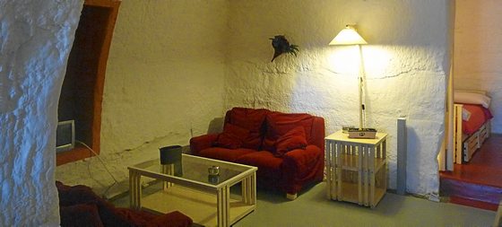Zortzi koba erakusten ditu, egun apartamentu dotore bihurtutakoak: porlanezko zorua, horma pintatu eta hezetasunik gabekoak, ohe eta altzari modernoak, komuna, egongela, sukaldea, telebista. Orain dirua ordaindu behar da, dirurik gabekoek bizitzen zituzten esperientzien zantzu bat izateko. Mendik oso presente dauka iragana. Eta nahi duenari, apartamentu hauek nola egin zituzten azaltzen dio.