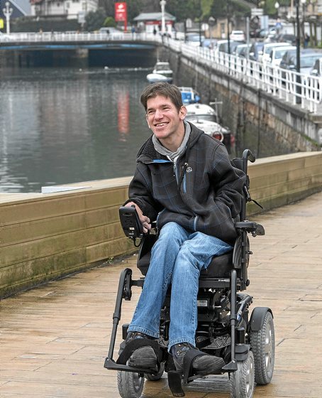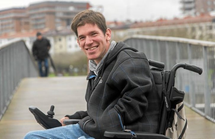Telmo Iruretak garun paralisia dauka eta horregatik ibiltzen da gurpildun aulkian. «Ez dakigu nola sortu zen. Normalean jaiotzetik izaten da paralisia, baina, ni oso originala naizenez, nire kasuan geroago etorri zen –kontatzen du barrez–. Bi urte eta erdi nituen eta birus bat sartu zitzaidan. Herpesaren birusa omen zen, baina berez medikuek ere ez zekiten. Entzefalitis bat sortu zidan eta ordutik dut garun paralisia».