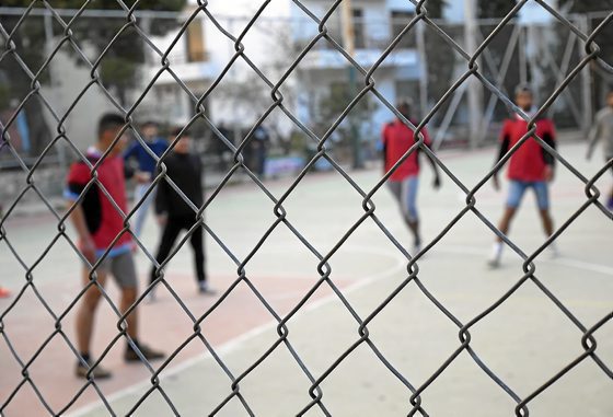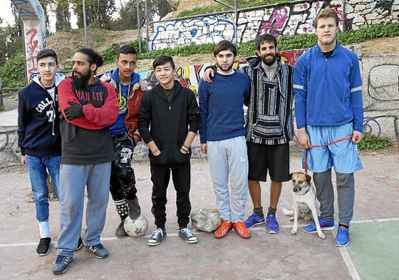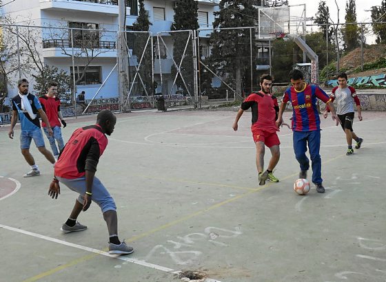 Gazteekin joan gara futbolera; Atenas hiriburuko Exarchia auzo gainera, muino batean dagoen kantxa txukunera, bertan ematen baitituzte orduak adin eta jatorri ezberdinetako errefuxiatuek.