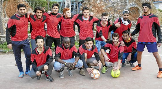Grezian ez aurrera ez atzera geratu diren errefuxiatuek futbola maite dute