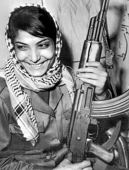 Leila Khaled (Haifa, 1944) Palestinako erresistentziaren historiaren ikur bizia da. Ume-umetatik erbestea ezagutu zuen; nerabea zela, Libanoko errefuxiatuen kanpamenduetan, Mugimendu Arabiar Nazionalarekin bat egin zuen; eta, 1967an, PFLP Palestinako Askapenerako Herri Frontea alderdi ezkertiarrarekin. 1969ko abuztuaren 29an Los Angelesetik Tel Aviverako 840 hegaldiaren bahiketan parte hartu zuen. Gerora iraultzaren iruditeriaren ikono bilakatu zen argazkia egin zion Eddie Adams argazkilariak. Neska gazte batek eztiro eta irribarre iradokitzaile batekin AK-47 fusila besarkatzen zueneko erretratuak mundura zabaldu zuen erresistentzia palestinarraren irudi erromantikoa. Handik urtebete eskasera, 1970eko irailaren 6an, beste hegazkin bahiketa saiakera batean atxilotu zuten Leila gaztea.