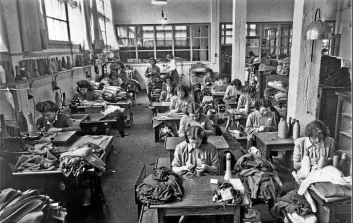 XX. mendearen hasierak emakumeen eskubideen aldeko borroka ekarri zuen berekin. Mugimendu feministen sorrera urteak izan ziren.1933an emakumeek botoa emateko eskubidea gauzatu ahal izan zuten lehenengoz espainiar Estatuan. Erregimen frankista eta haren zapalkuntza iritsi zirenean atzerakada nabarmena gertatu zen, eta Eliza Katolikoak hartarako lagundu zuen. Portaera eta janzkera arau berriak jarri zituzten indarrean. Hezkuntzari dagokionez, 1941etik aurrera emakumeentzat propio sortutako irakasgai bat zegoen, besteak beste etxeko lanak, sukaldaritza eta jantzigintza nozioak biltzen zituena. 40ko hamarkadaren hasierako urteetan emakumeak lan mundura sartzen hasi ziren, osasungintzan, eskoletan, saltokietan eta beste lan esparru batzuetan, etxeko lanak ahaztu gabe, ordea. Artikulua ilustratzen duen argazkia 1945ean egina da, Gasteizko Adriano VI.aren kalean zegoen Calviño ehun-lantegian. Egilea Alberto Schommer Koch da, Gasteizera bizitzera etorritako argazkilari alemana. Schommerren funtsak Arabako Lurralde Historikoko Artxiboan daude gaur egun.