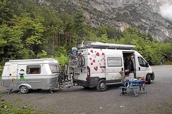 Ikasketak izan ziren ere garraiobidea hautatzeko arrazoietako bat. Furgoneta bat, aitak berak apaindua: «Nik egin nuen, sinplea baina ekipatua, nahiz eta urik ez izan. Eta karabana txiki bat, bigarren espazio bat nahi genuelako, hatsa hartzeko eta lanak antolatzeko;haurrentzako ikasketak antolatu beharra genuelako».