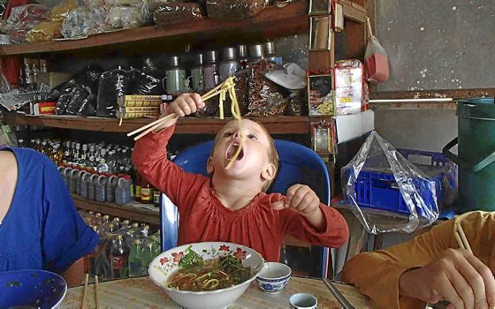 Bidaian eragin handia izan duen beste zerbait familia osoaren presentzia izan da: «Haurrekin zeharo ezberdina da, irekitze bat dira. Toki batera heltzen zarelarik, haurrak baldin badituzu, jendea oraindik gehiago etortzen da. Eta baduzularik ile horia duen hiru urteko haur bat, gehiago oraindik! Iranen jendea haurraren ilea hunkitzera etortzen zen, irringarria zen!». Bidaian zehar atentzioa ematen zutela onartu du, Turkian, esaterako, turista japoniarrek argazkiak beraiei ateratzen zizkietela bota du irribarretsu.