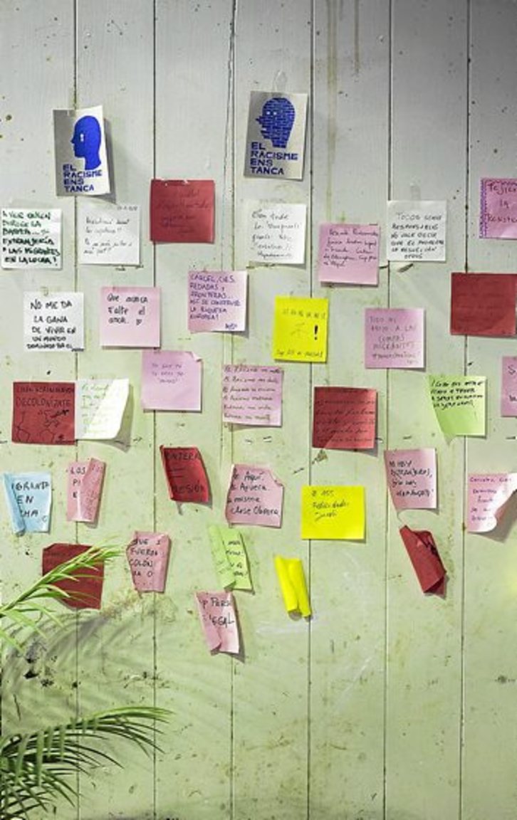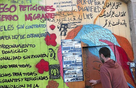 Bartzelonako Gardunya plazan, Boqueria merkatutik gertu den Massana eskola oihan, Raval auzoan, itxialdi mugagabea hasi dute jatorri desberdineko etorkin eta errefuxiatuek 300 gizarte mugimendu eta kolektiboren sostenguarekin. Sarrerako atean, pintaketa koloretsu eta bizi batek itxialdiaren aldarrikapen nagusiak jasotzen ditu oinez pasatzen diren guztiek ikusi eta irakurri ahal izateko.