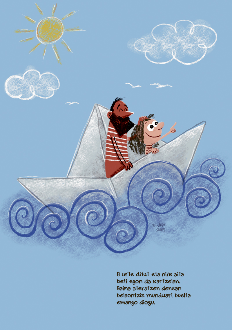 Aita espetxetik ateratzerakoan elkarrekin partekatuko dituzten ametsak aitortu ditu beste neska honek. Zortzi urte ditu dagoeneko, eta ez du inoiz aita kartzelatik kanpo ezagutu. Argi du, ordea, goiz ala berandu, bere eskutik munduari bira emango diola belaontzian.