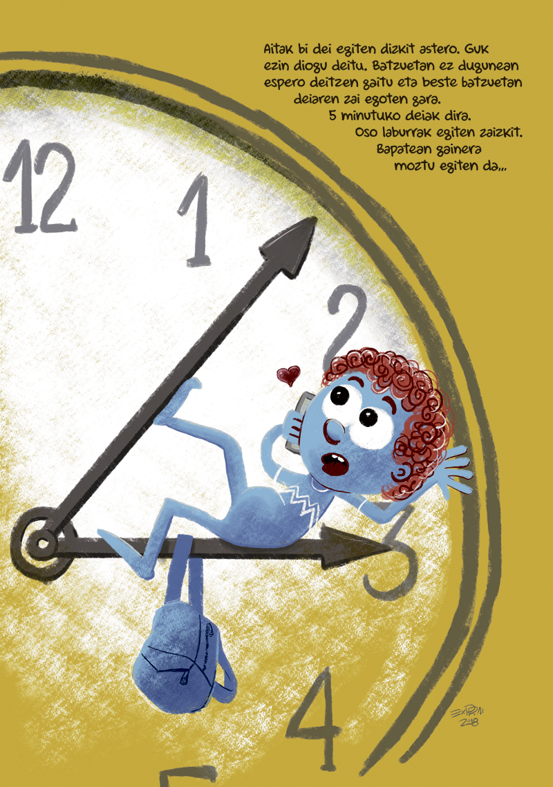 Kartzelako dei telefonikoak nolakoak diren azaltzen digu haur honek. Aitak bi dei egiten dizkio astero, bost minutukoak biak, baina, bat-batean, agur esateko eta muxuak emateko astirik gabe, mozten direla dio kexu umeak.