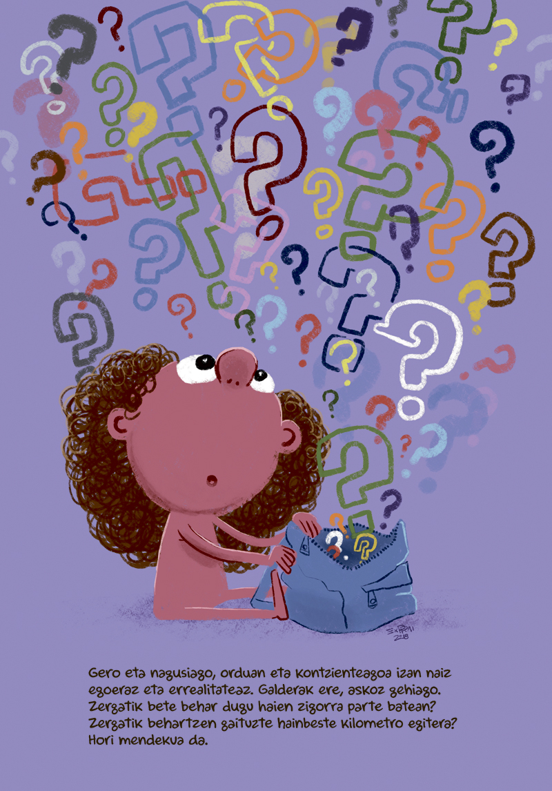 Gero eta nagusiago izan, aita preso izatearen arrazoiak gero eta gutxiago ulertzen zituela aitortu du beste ume honek. Galderak ere askoz gehiago dira adinak aurrera egin ahala. «Zergatik behartzen gaituzte hainbeste kilometro egitera? Zergatik bete behar dugu haien zigorra parte batean?», galdetzen dio bere buruari.