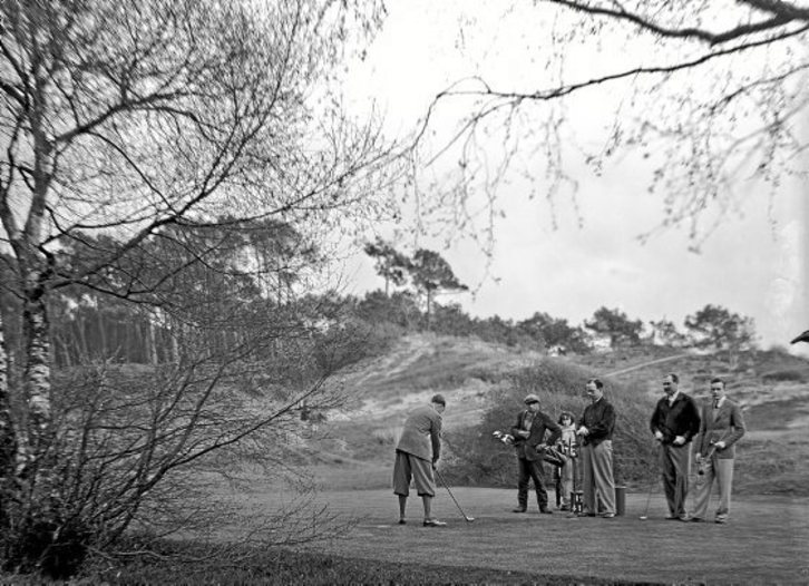 XX. mendearen hasieran, Biarritzen biltzen ziren Europako dirudun garrantzitsuenak. Milioi asko zituztenak eta aristokratak, beren luxuzko jantziekin, bertako hondartzetan pasieran ibiltzen ziren eta dantzaldi eta festetan parte hartzen zuten. Klase sozial horrentzat Biarritz udako geltokirik onenetakoa zen, bertako hotelak, jatetxeak eta tenisa, bridgea eta golfa praktikatzeko kirol instalazio ugariak tarteko. Biarritzeko inguruetan golf zelai handi bat egiteko asmoz, 1924an Biarritz Anglet la Forêt elkartea sortu eta Angeluko basoaren eta dunen 150 hektarea erosi zituzten. 1925ean, mundu osoan golf zelaiak diseinatzen aritutako Tom Simpson adituak hartu zuen Xibertako golf zelaia egiteko proiektuaren ardura. 1928az geroztik, Xibertan jokatu zituzten Estatu frantsesean egindako lehen golf txapelketa profesionalak. Artikulua ilustratzen duen irudia Jules (1872-1932), Louis (1874-1947) eta Henri (1876-1956) Seeberger anaiek egin zuten, 1929an, Xibertan.