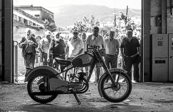 Bitartean, Derlan motoen historiaren hari mataza mamitzen zihoan. «Herrian Basor fabrikaren historian arakatzen ari nintzela jakin zen, eta jendea gerturatzen zitzaidan hau eta beste kontatzera. Horrela jakin nuen fabrika zegoen pabiloia –Salberdinen, gaztetxearen parean– zutik zegoela oraindik, baina denbora gutxirako, bota egin behar zutelako. Orduan pentsatu nuen polita izango zela bota aurretik langileekin bertan biltzea eta argazki batzuk ateratzea. Horrela egin genuen 2017ko uztailaren 2an».