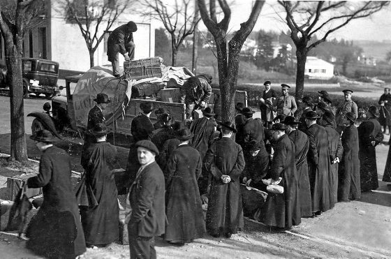 1932ko urtarrilaren 23an, Azaña buru zuen Gobernu errepublikano espainiarrak Jesusen Lagundia desegiteko dekretua sinatu zuen. Haren ondasunak Estatuaren jabetza bihurtu ziren. “La Voz de Guipúzcoa” egunkari errepublikanoak honako lerroburu hau atera zuen bere lehen orrialdean: “Bart gauean dekretu bikaina sinatu zuten”, eta dekretu haren xehetasunak azaltzen zituen. “El Pueblo Vasco” eta beste egunkari batzuek «dekretu mingarri baten» garrantziaz hitz egin zuten. Besteak beste Jose Ariztimuño Aitzol apaiz abertzale ezagunak sortutako “El Día” egunkaria desegite dekretuaz mintzatu zen bere lehen orrialdean, euskal estatutuaren aldeko kanpainaren gaineko izenburuen parean. Egunkari horrek otsailaren 3an berriro agertu zituen estatutuaren aldeko izenburua eta jesuitak kanporatzearen aurkakoa; besteak beste, honakoa zioten: «Badoaz Loiolako semeak, badoaz gure bihotzeko anaiak, baina Inazioren espirituak gugan dirau, Euskadiko mendiak bezain sendo, indartsu; gure Aberriaren ibarrak bezain lasai, bare…». Dekretuak 3.000 lekaide ingururi eragin zien. Pascual Marinek 1932ko otsail hasieran egin zuen irudi honetan, jesuita talde bat ageri da Irungo mugaren inguruan, beren gauzak dauzkan kamioi bat deskargatzeko zain.