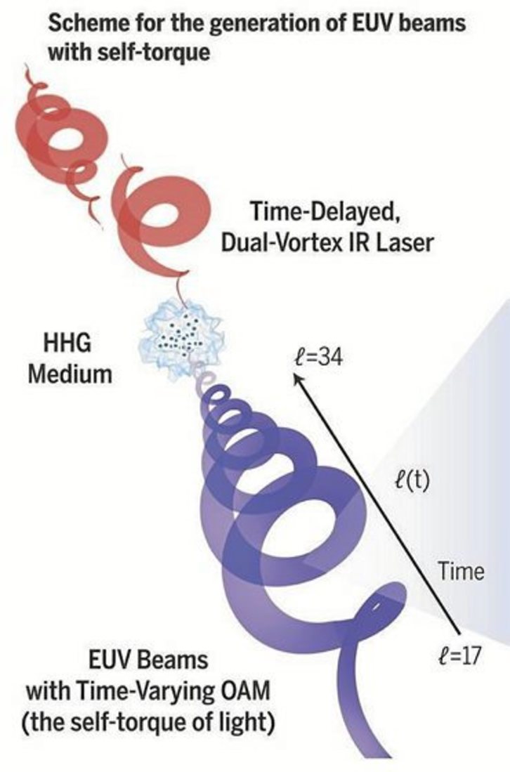 Gaian jantzia egon arren, apur bat kostatu zait aurkikuntza honen nondik norakoak ongi ulertzea. Ez nuen ezagutzen argiari momentu angeluar bi egozten zitzaizkionik, bata, bere eremu elektromagnetikoaren polarizazioa barnebiltzen duena (SAM edo espinaren momentu angeluarra) eta bestea, bere uhin frontearen formari dagokiona (OAM edo orbitalaren momentu angeluarra). Hau da, argi-izpiak bere hedatze ardatzaren inguruan biratu egiten ditu elkarzutak dituen eremu elektriko eta magnetikoa, eta bestetik, iturri beretik irtendako argi-izpi paraleloek osatzen duten uhin fronteak ere biratzen du desplazatzen den ardatzaren inguruan. Fenomeno hauek ezagunak baziren ere, biratze edo bihurdura hau estatikotzat jotzen zen, denboran aldaezina, eta ez zen, beraz, parametro kontrolagarri bat. Aurkikuntza honetan, baina, zera topatu dute: OAM motako bihurdura denboran aldagarria dela. Zehazki, ikerlariek denboran atzeraturiko eta momentu angeluar ezberdineko izpiak elkarrekintzan jarriz, harmoniko altuko muturreko izpi ultramore bat lortu dute, denboran aldagarria den momentu angeluar bat erakusten duena. Regoren esanetan, argia zurrunbilo moduan hedatzen da eta orain bere biratze abiadura kontrolatzeko atea zabaldu da. Ingelesez “self-torque” bataiatu dute propietate hau, euskarara “auto-bihurdura” bezala ekar genezakeena.