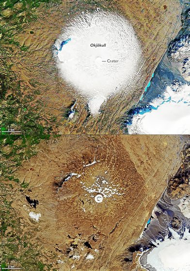 Lehen ere glaziar asko urtu izan dira, askoz ere txikiagoak normalean. «Baina Okjokullen neurriko glaziarrak dira orain desagertzen hasi direnak. Aurki handienak ere, izen ezagunekoak, mehatxupean egongo dira», dio Boyerrek.