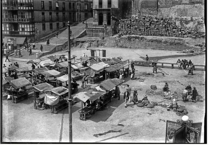 Izen ugariko plaza 1930eko hamarkadako Bilbon