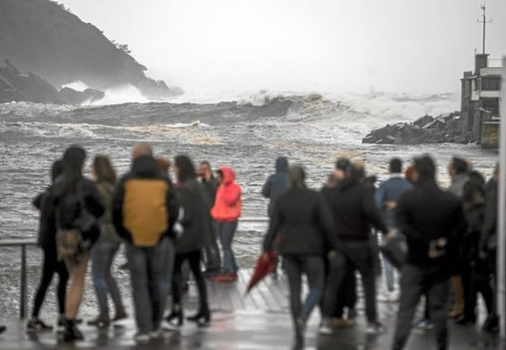 Eta gaur zentzatu naiz. Aterki bat erosi dut, familiarra. Eta euria hasi du; euria goitik behera, ezker-eskuin; euria amorruz, erruki gabe. Euria San Martin kaleko hondeamakinetan, euria Bretxako merkatu ertzeko baserritarren postu apurtuetan. Euria Altsasun, euria Lesbosen, euria Santiagon, euria Bartzelonan. Hezetasuna zapatila-puntetatik sartu zait, haizeak bizkarra busti dit, sakela, hizkuntza. Nire aterpeari euria dario, itoginak dauzka eta ura hazita dator espaloi ertzetan; zapata-zolak gainditu eta orkatiletara iritsi zait, eta aterkiaren egurrezko heldulekuari galdera-ikur baten antza hartu diot. Zertarako dira aterkiak estoldek gainezka egiten dutenean? •