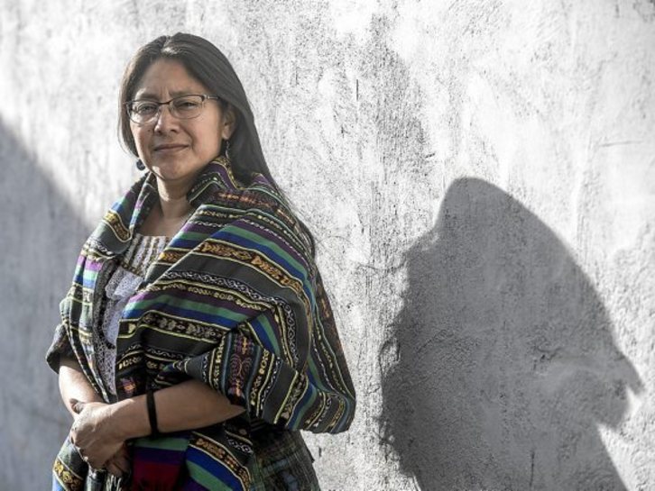«Bai herri indigena bai emakume bezala aurrera daramagun borrokaren berri ematea da bisitaren helburua. Maia Kitxe lurraldetik nator, aurre egiten ari garen arazoak azaltzeko asmoz. Politika neoliberal eta kapitalista globalaren ondorio dira arazo horiek. Gure gobernuetan eragiten dute. Ustelkeriak hartuta daude», hasi zaigu azaltzen.