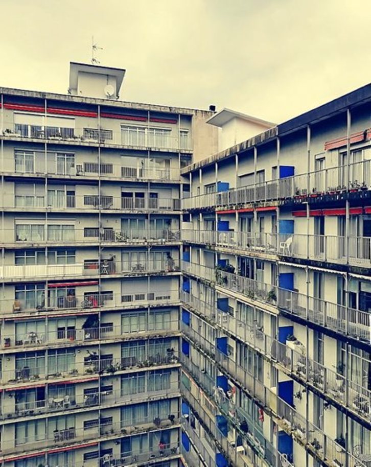 Beste ertz bat pribatutasunarena da. Demagun ebazten dugula baietz, beharrezkoa dela etxebizitza-eraikinek kanpo-espazio erabilgarriak izatea. Derrigor izan behar al du espazio horrek norberarena? Gure egin behar dugu “etxebizitza bat, balkoi bat” lema ala saiatuko gara eraikinetan komunak izango diren espazio irekiak sortzen? Estalkiak, esaterako. Edo eraldaketa tipologikoa baimentzen badidazue, berreskuratu dezakegu kanpo-pasarelaren kontzeptua etxebizitzetara sartzeko, barne-korridore ilunak alboratuz?