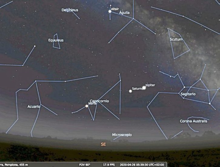Ikusezin zaigun mikromunduak gure arreta bereganatu eta bizitzak baldintzatu dizkigunean, ikusgarria zaigun makromunduari begiratzeko gomendioa egin nuen pasa den artikuluan, lerrootatik maiz egin dudan bezala, zeruko astroei begiratzeko gomendioa, alegia. Esaten nuen, gainera, gizateriaren bizi laburrean betierekoa den zeruak atzo, gaur eta biharko gizakiekin konektatzeko aukera ematen ahal digula isolamendu egunotan. Edo gutxienez, zeozer originala eta ederra egitekoa, egunsentiaren aurretik Jupiter, Saturno eta Marteri begiratuz, hego-ekialdera ematen duen leihorik izanez gero. Alta, egun batzuk badira hodeitza ia etxe barrura ere sartu dela, eta ez dirudi datozenak askoz hobeagoak izango direnik ilargi berriko gau iluneko zeruaz gozatzeko. Pena handiz, Lirida izar iheskorren euritearen egun oparoenak euripean pasatzen ari zaizkigu.