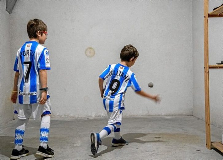 Aitarekin zaborra botatzera ateratako haur baten egoera ere jaso dute, «konturatzerako aitak frontoian ikusi zuen korrika buelta eta buelta, denbora galdua berreskuratzen».