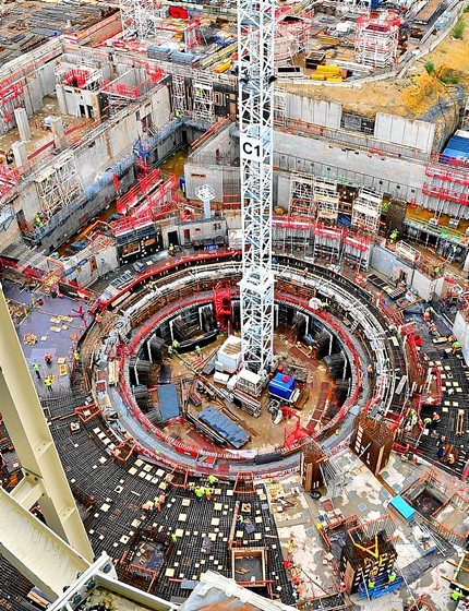 Nazioarteko argazki agentziek banatu dituzten irudietan ikusten dira garabiak jada esperimentuaren bihotzaren egitura muntatzen, “Tokamak” deitzen duten erroskilla baten forma duen ganbera. Bertan emango dira fusioaren erreakzioak, plasma baten baitan, partikula subatomikoen zopa gaseoso batean. Atomo ionizatuen hodei zurrunbilotsu hain bero bat, ezen eremu magnetiko izugarri indartsuekin baino ezin daitekeen eutsi.