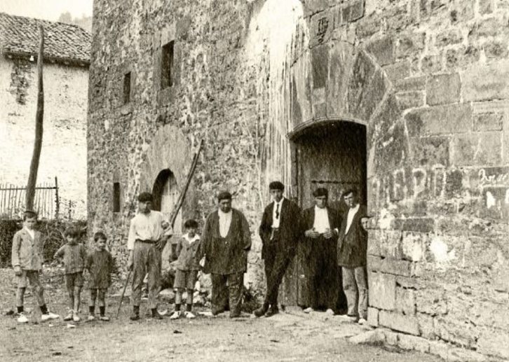 Federico Alduntzin, Aresoko nafarra, 1937ko ekainean atxilotu eta Bilboko Santutxu auzoan zegoen Larrinagako kartzelara eraman zuten, Bizkaiko hiriburua erori ondoren. Gerra Zibilean ertzaina izan zen. Jose Antonio Agirre lehendakariaren segurtasunaz arduratzen zen, Bilboko Carlton hotelean, Eusko Jaurlaritzaren Lehendakaritzaren egoitzan. Haren emazte Josefa Mugerza eta alaba, Donostia erori ondoren, errepresio frankistatik ihesi, Santanderrera joan ziren, eta Txinako bandera zuen ontzi batean frantses Estaturantz abiatu ziren. Larrinagako espetxetik askatuta, Federico Donostiara itzuli zen familiarekin, eta Biarritz hoteleko lana berreskuratu zuen. 1940ko hamarkadan, ELA sindikatuko militante zela, berriro atxilotu eta espetxeratu zuten Donostiako “Infernuko” kartzelan, Atotxako frantziskotarren elizara sindikatuko kide baten hiletara joateagatik. Ez dago artikulu hau ilustratzen duen argazkiari buruzko informazio handiegirik, baina joan den mendeko 20ko hamarkadakoa dela esan daiteke, baita egilea ezezaguna dela ere. Areson egindakoa da argazkia, eta baliteke Axenea etxeko sarreran egindakoa izatea. Irudi hori, Aresoko eta Gerra Zibileko beste batzuekin batera, Federico Alduntzinek bere familiari utzi eta haren alaba Miren Josebe Poznek gordetako argazki ondarearen parte da. Miren Josebe Pozne 2016. urtean hil zen.