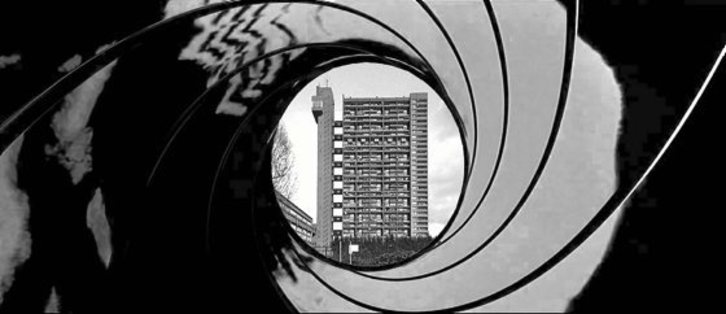 “Goldfinger” 1958an idatzi zuen Ian Fleming londrestar petoak, hiria izugarri azkar aldatzen ari zen garai batean. Bigarren Mundu Gerra amaituta, berreraikuntza garaia zen eta hiria ulertzeko modua ez zen gerra aurreko berbera. Baldintzak (ekonomikoak, sozialak, teknikoak, politikoak) ezberdinak ziren eta, halabeharrez, emaitza ere bai. Bogan zeuden mugimendu modernoa –zehazki, haren aldaera brutalista–, eta paisaia viktoriar idilikoan hormigoizko eraikin andana hasi zen azaltzen pixkanaka, etenik gabe 80eko hamarkada iritsi arte. O, Thatcher.