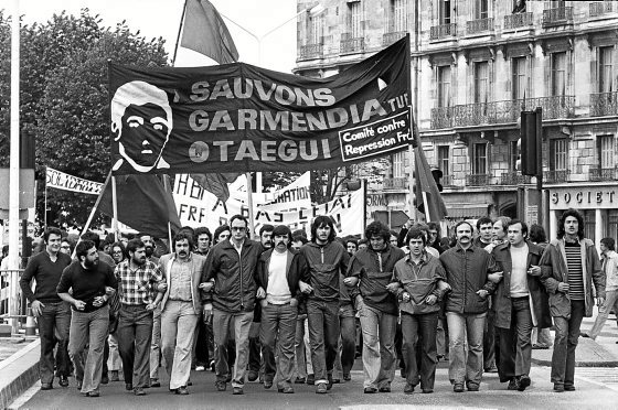 1974ko abuztuaren 28an Jose Antonio Garmendia eta Jose Maria Arruabarrena euskal militanteak atxilotu zituzten, eta Garmendiak tiro bat jaso zuen buruan. Angel Otaegi urte bereko azaroaren 28an atxilotu zuten. 1975eko abuztuaren 28an Garmendiaren eta Otaegiren aurkako gerra-kontseilua egin zen, haien abokatuak Juan Maria Bandres eta Pedro Ruiz Balerdi zirela, eta biharamunean argitaratu zen biei heriotza zigorra ezarri zien epaia. Epaiketaren egunean, greba orokorrerako deia egin zuten, eta grebaren jarraipena orokorra izan zen. Hego Euskal Herrian, manifestazioak Poliziak eta Guardia Zibilak erreprimitu zituzten, eta atxilotu eta zauritu ugari izan ziren, haietako batzuk balaz. Ipar Euskal Herrian, CRSek gogor erreprimitutako agerraldiak izan ziren Baionan eta Hendaian. Daniel Velezen argazkian, Garmendiaren eta Otaegiren alde Baionan egindako manifestazioa ikus daiteke. 1975eko uztailaren 30ean Juan Paredes Manot “Txiki” eta Ignacio Perez Beotegi “Wilson” atxilotu zituzten Bartzelonan. Irailaren 19an, auzitegi militar batek epaitu eta heriotza-zigorra ezarri zion Txikiri. Irailaren 26an, Ministro Kontseiluak berretsi egin zituen Txikiren eta Otaegiren heriotza zigorrak, baita Baena, Sanchez Bravo eta Garcia Sanz FRAPeko kideenak ere, eta Garmendiarena kommutatu egin zuen. Heriotza zigorren aurkako protesta manifestazioak izan ziren. Europan, milaka pertsona mobilizatu ziren eta Espainiako ordezkaritza batzuei eraso zieten. Irailaren 27an bete zituzten heriotza zigorrak. Euskal Herri osoan izan ziren protestak eta mobilizazioak. Poliziak erreprimitu egin zituen eta atxilotu eta zauritu ugari izan ziren. Europako hiriburu nagusietan milaka pertsona agertu ziren fusilamenduen eta diktadura frankistaren aurka protesta egiteko.