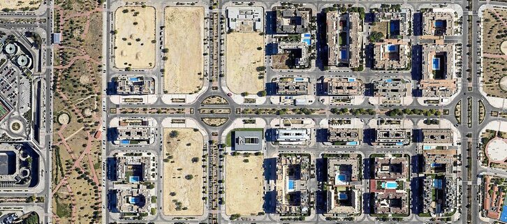 Plazer txiki hori azalduz hasten du Jorge Dioni Lopez kazetariak “La España de las piscinas” saiakera (Arpa editores, 2021). Liburuan zehar, Espainiako hirigintza garaikideko fenomeno nagusi batean jartzen du azpimarra, hots, hiri handien aldirietan eraiki diren zabalgune berrietan. Bere tesia da hirigintza mota honek indibidualismoa eta deskonexio soziala sustatzen dituela eta behar zehatz batzuk sortzen dizkiela bertako bizilagunei. Behar horien arabera bozkatzerakoan, eskuina jaun eta jabe dela konstatatzen du Lopezek. Google Maps, Madrid; Sanchinarro, Las Tablas, Valdebebas.