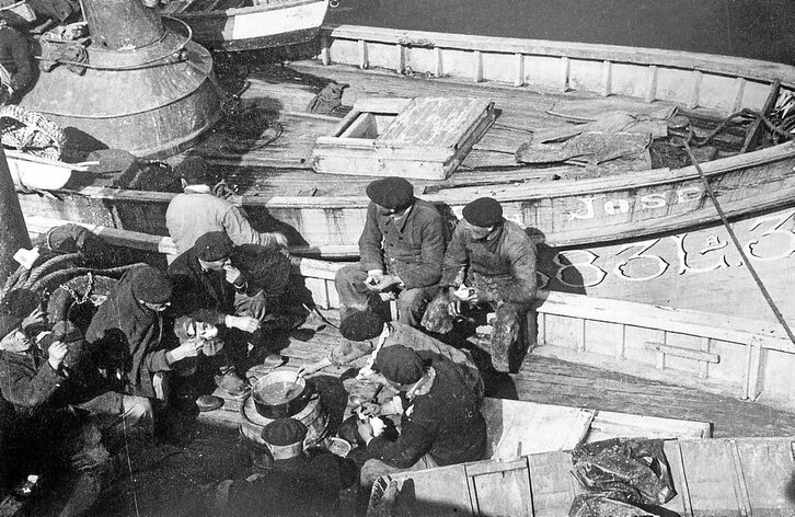 Argazkilari askok utzi digute beren irudietan itsasoaren, haren kemenaren, portuen, arrantzaleen, sareak josten ziharduten emakumeen, erronken, naufragioen eta gerren ikuskera. Horietako bat Konarzewski izan zen; Donibane Lohizunen bizi zen poloniar hark bere kamerarekin olatuen energia atzematen jakin zuen XIX. mendearen amaieran. Beste batzuek, hala nola Pascual Marin, Galarza eta Ricardo Martinek, Donostiako Pasealeku Berrian lehertzen ziren olatu erraldoien argazkiak egin zituzten XX. mendearen lehen herenean. Federico Scheneidhoferrek Arando Handiko (Pasaia) olatuetan noraezean zeuden itsasontzien irudiak utzi zituen. XIX. mendearen bigarren erdian Valentin Marinek, Hermenegildo Oterok eta beste batzuek arrantzaleei atera zizkieten argazkiak Donostian. Sigfrido Koch Bengoetxeak eta Jose Ortiz Echaguek arrantzaleen ikuspegi piktorikoena erakutsi ziguten XX. mendearen lehen erdian. Artikulua ilustratzen duen irudia Ignacio Etxandi margolari eta argazkilari donostiarrak (1912/1952) egina da; bertan, arrantzale talde bat ageri da hamaiketakoa egiten, Donostiako portuan. Argazkia joan den mendeko 40ko hamarkadan egindako multzo batekoa da.