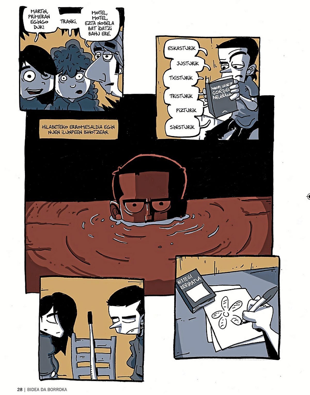 “Bidea da borroka” komikigintza gorako bidean dagoen unean dator. «Lehen esaten nuen euskal komikigintzaren onena zela ateratzen zen guztia erosteko modua zenuela. Orain zalantzak ditut. Askotan komikiari goitik beherako begirada egin izan zaio, gure inguruan ez da begi onez ikusi den genero bat, mangarekin lotu izan da eta infantilizazio handi samarra jasan du. Badira urte batzuk gora egiten ari dela; “Xabiroi”, “H28”… komikilari oso onak sortu dira Euskal Herrian eta genero bezala prestigio bat irabazten ari da. Komiki bakoitzarekin irakurlea hezten ari gara eta hori interesgarria da», iritzi dio Unaik.