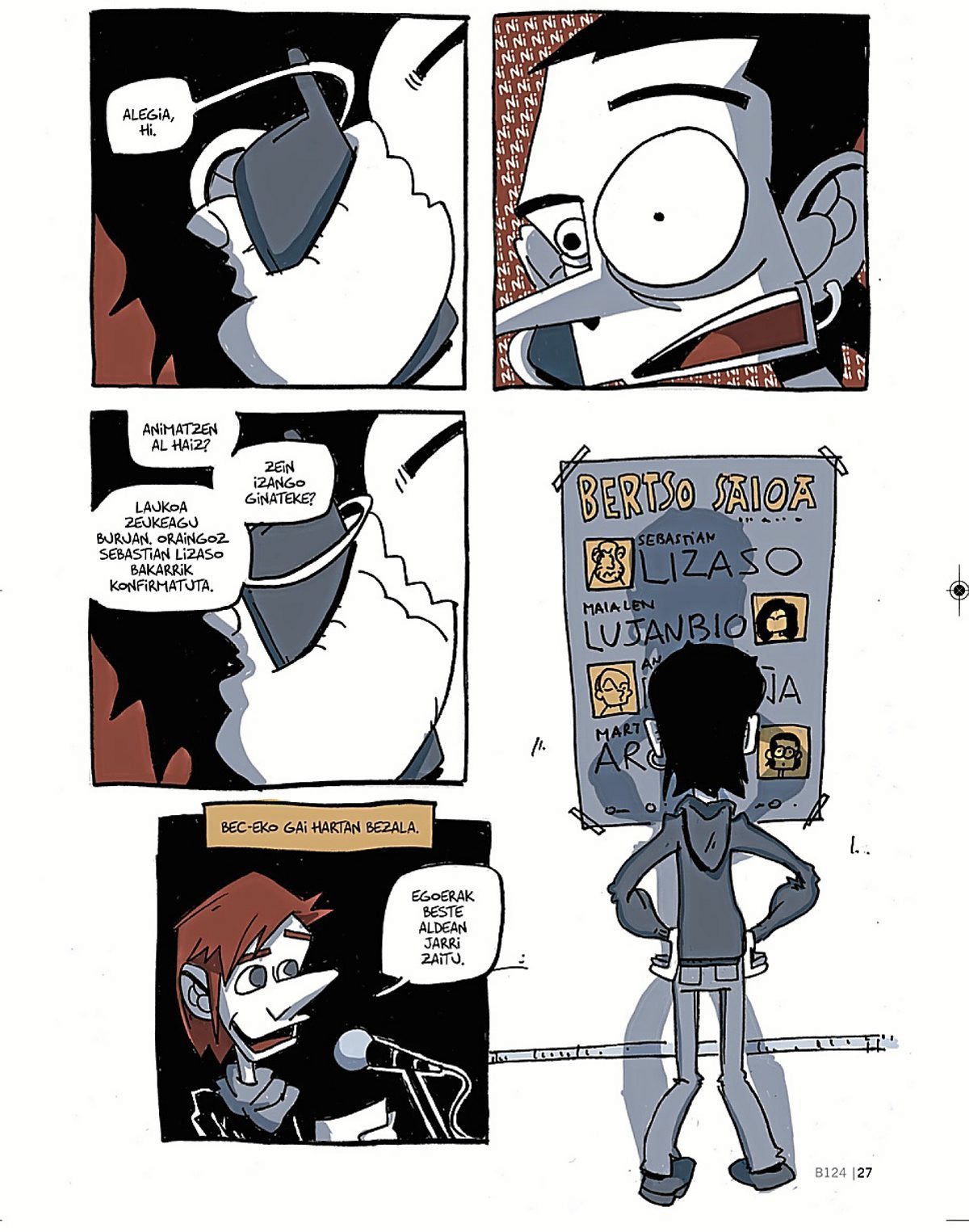 Eta hor doa Martin Artola lehenengoz Euskal Herriko Bertsolari Txapelketako finalean kantatzera, Barakaldoko BECera. Eta errepidean osatzen duen bidearen parean bere bizitzaren ordura arteko bidea egiten du buruan. «Unai eta biok bertso munduan hazi ginen, bertso mundutik gure belaunaldiko beste edozeinek bizi dituen gauzak bizi izan ditugu eta saiatu gara horiek Martin Artolaren pertsonaiari transmititzen. Euskal Herriko gatazka izendatu den horren alor zehatz batean jaioa da, gerra hizkera batean hezia, dena eraikia zegoenean jaio zen –bera jaio zenerako hor zeuden ikastolak, euskalgintzako erakunde gehienak, gaztetxeak, musika talde erreferentziazkoenak– horien ondoren eta berandu samar jaio izanaren sentsazioa dauka eta bere bizitzari epika horren baitan topatu nahi dio zentzua. Bere ekintzak beti horrelako funtzio handiago baten baitan kokatzen saiatu izan da eta gertatu zaiona da heldu dela helduarora eta epika hori eta bera hazi zen testuingurua aldatua, bukatua edo beste epika edo testuinguru batzuekin nahastua geratu dela. Hori da komikian kontatzen dena», azaldu du Beñat Gaztelumendik.