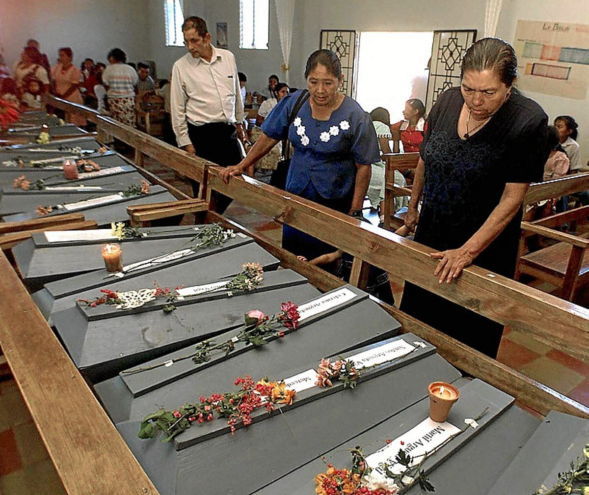 El Mozote, La Joya, Rancheria, Jocote Amarillo, Cerro Pando, Cerro Ortiz, Arambala. 1981eko abenduaren 11tik 13ra, El Salvadorreko Armadak, elitezko Atlacatl batailoiak, herrixka horietako herritar gehienak hil egin zituen. Ez dago hildakoen zifra zehatzik, baina, iturri batzuen arabera, milatik gora izan ziren, eta horietatik 558 haurrak izan ziren. Hildako guztiak zibilak ziren. Sarraskia Latinoamerikako handiena izateaz gain, krudelenetariko bat izan zen. Ameriketako Estatu Batuetan entrenamendua jaso zuten militarrek ez zuten gupidarik izan ezta txikienekin ere, ezta haurdun zeuden emakumeekin ere, edo adineko pertsonekin. FMLNko gerrillaren kontrako estrategia militarraren parte izan zen nekazari eremuetako biztanleak hiltzea eta haien jabetza guztiak, etxaldeko animaliak eta lurrak deuseztatzea. 1991ko apirilaren 27an sinatu ziren Bake Akordioen ostean osatu zen Egiaren Batzordeak, erabat frogatutzat eman zuen 1981eko abenduaren 11n Atlacatl batailoiko soldaduek El Mozoten «nahita eta modu sistematikoan» 200 gizon, emakume eta haur baino gehiago hil zituztela. Bezperan sartu ziren herrian eta egun batez etxeetan edo herriko elizan atxiki ondoren, metrailatu egin zituzten kasu askotan, lepoa edo gorputzeko beste atal batzuk moztu zizkieten eta ondoren, gorpuak etxeetan pilatu eta su eman zieten laboreekin batera. Agindua deus ere ez uztea zen, ihes egitea lortzen zutenek sostengurik eta elikatzeko modurik izan ez zezaten. Neska gazteenak hil aurretik bortizki bortxatu zituzten. El Mozoten eta inguruko herrixketan estrategia errepresibo bera errepikatu zuten.