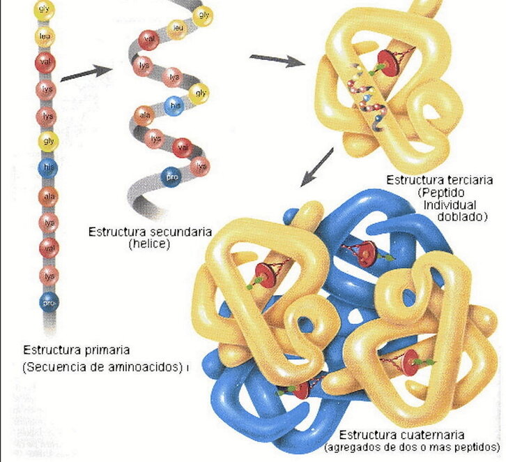 Aminoazidoen sekuentziak zehazten du toleste-bidea; aminoazidoz sortutako kate batetik abiatzen gara, eta horiek beraien arteko elkarrekintza sortzen dute, hiru dimentsioko egitura bilakatzeko. Lerro hauen azpian ageri den irudiak, hain zuzen ere, modu argian erakusten du aipatutako prozesua.